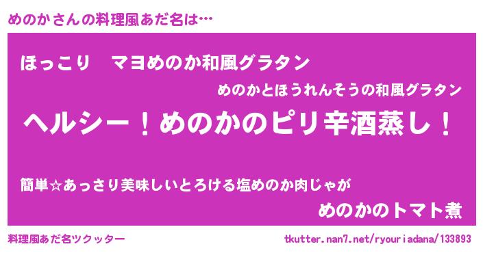 | ヘコむあだ名 | 『めのか(笑)』『めのふぇ~』 |