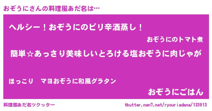 | 意味不明あだ名 | 『永久保存おぞうに』『自称おぞうに』 |