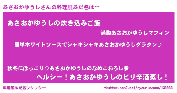 | ヘコむあだ名 | 『あさっ子』『あさおかゆうし(震え声)』 |