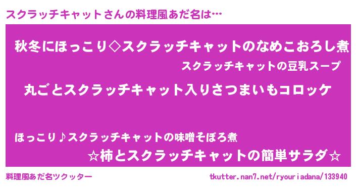 | 意味不明あだ名 | 『住所不定無職スクラッチキャット(85歳)』 |