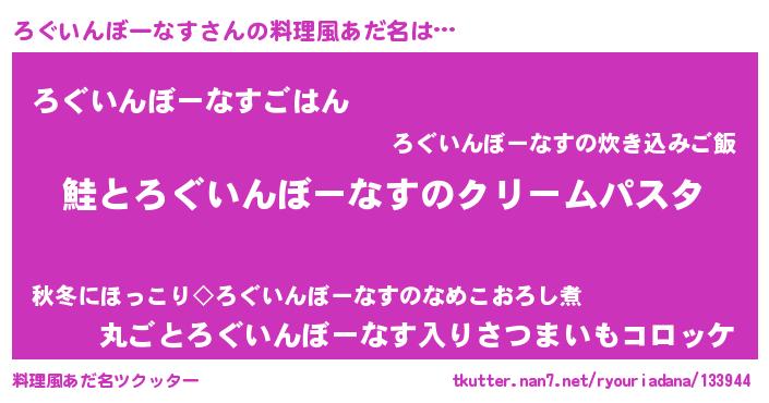 | 欧米人風あだ名 | 『ダニエルろぐいんぼーなす』 |
