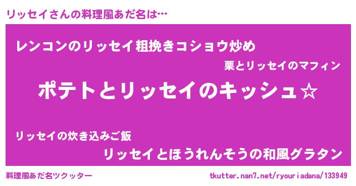 | ヒーロー風カッコイイあだ名 | 『幻影騎士リッ』『最強戦士リッセイ』 |