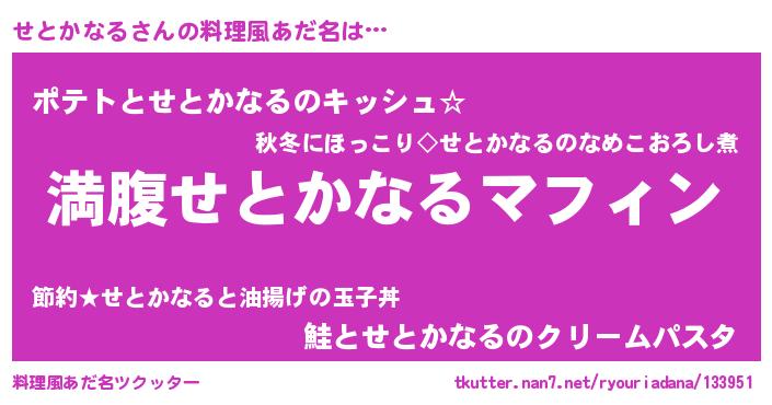 | 胡散臭い通販商品みたいなあだ名 | 『絶対に幸福をもたらす健康食品…その名も「せとかなる」』 |