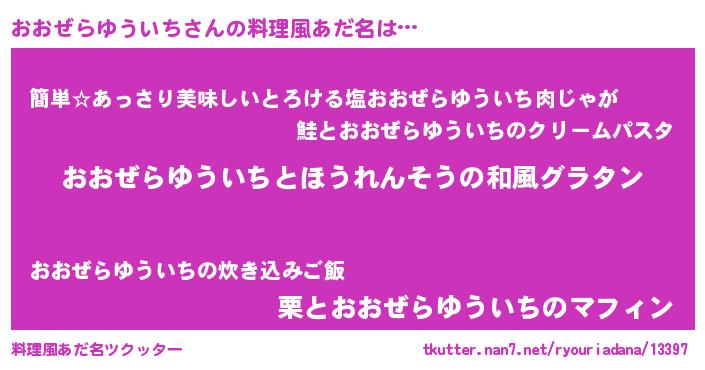 | 肩書あだ名 | 『おおぜらゆういち上級大将』 |