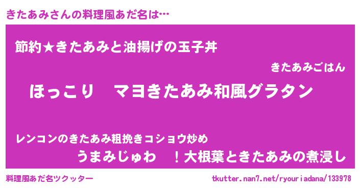 | 意味不明あだ名 | 『住所不定無職きたあみ(2歳)』 |