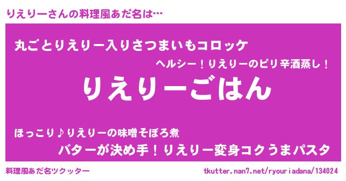 | 男性向けラノベタイトル風あだ名 | 『転生したらりえりーだった件』 |