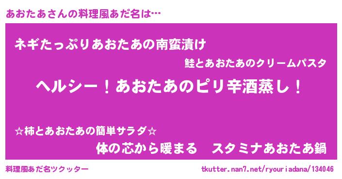 | ヘコむあだ名 | 『あおもー』『牛乳』『あおたあ(笑)』 |