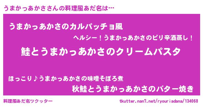 | ヘコむあだ名 | 『うまかっあかさ(苦笑)』『うまもー』 |