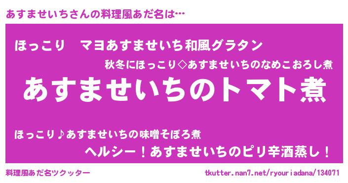 | ヘコむあだ名 | 『あすにゅー』『あすお』『なまこ酢』 |