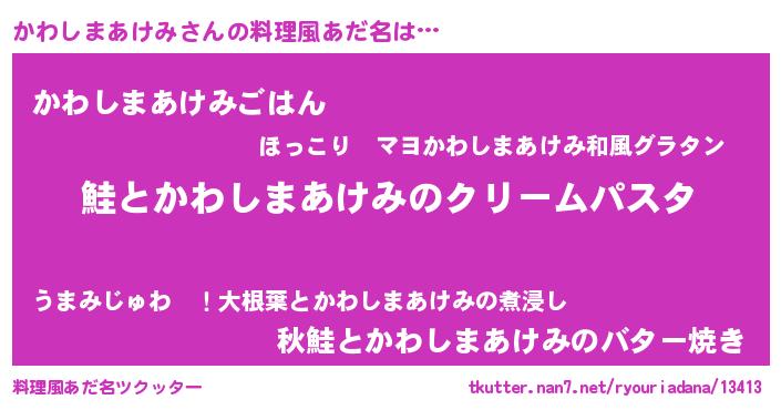 | ヘコむあだ名 | 『かわしまあけみ(爆)』『つくし』 |