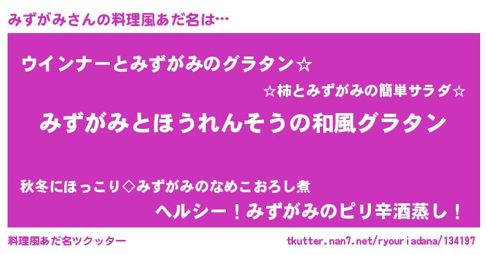 | 意味不明あだ名 | 『ヨモギ科みずがみ属』『自称みずがみ』 |