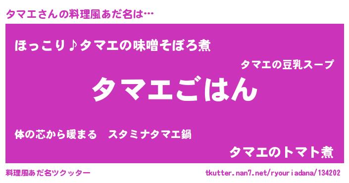 | 男性向けラノベタイトル風あだ名 | 『タマエスレイヤー』『タマエの憂鬱』 |
