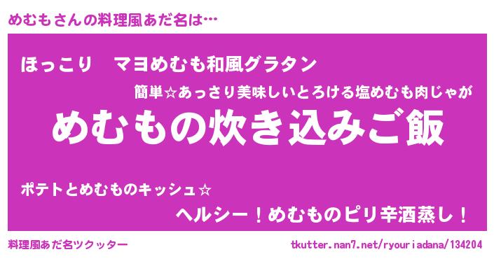 | 意味不明あだ名 | 『住所不定無職めむも(89歳)』『自称めむも』 |