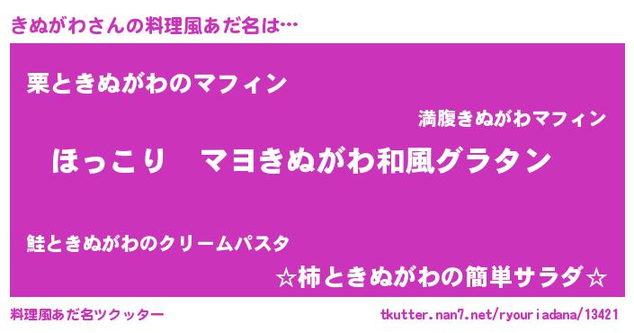 | 意味不明あだ名 | 『住所不定無職きぬがわ(86歳)』 |