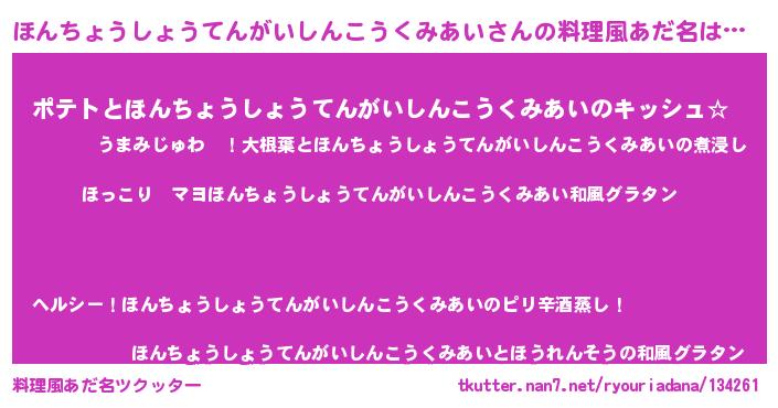 | 意味不明あだ名 | 『住所不定無職ほんちょうしょうてんがいしんこうくみあい(93歳)』 |