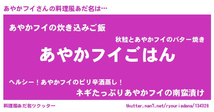 | ヒーロー風カッコイイあだ名 | 『スーパーアヤカフイ』『ネオアヤカフイ』 |