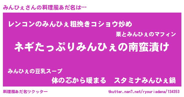 | 肩書あだ名 | 『みんひぇ御曹司』『みんひぇ総統』 |