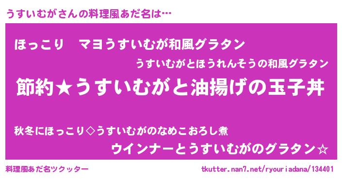 | 女子向けラノベタイトル風あだ名 | 『うすいむが姫と円卓の騎士』 |