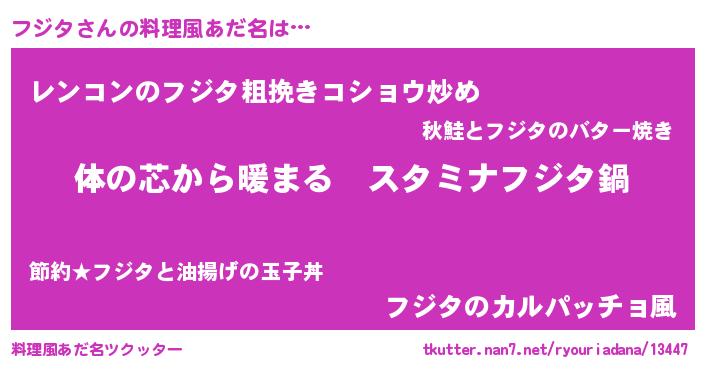 | ヘコむあだ名 | 『つくし』『フジタ(笑)』『フジもー』 |