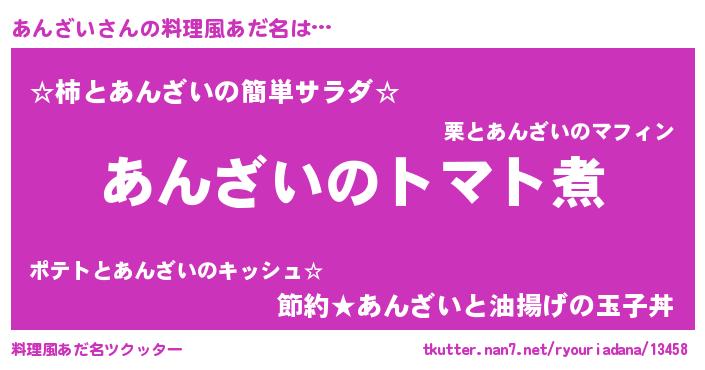 | 女子向けラノベタイトル風あだ名 | 『あんざい夫妻のなれそめ』 |
