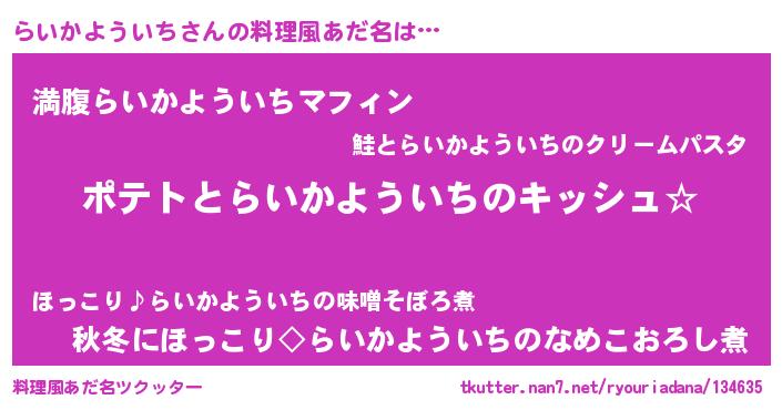 | ヘコむあだ名 | 『らいっ子』『らいかよういち(笑)』 |