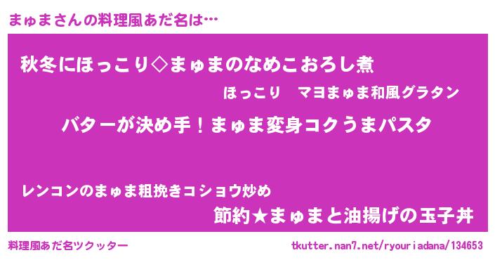 | ヘコむあだ名 | 『まゅっふぃ~』『まゅぷりん』 |