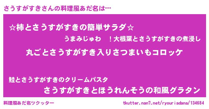| 意味不明あだ名 | 『住所不定無職さうすがすき(71歳)』 |