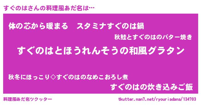 | 意味不明あだ名 | 『ニラ科すぐのは属』『永久保存すぐのは』 |