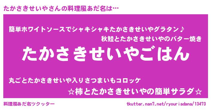 | 男性向けラノベタイトル風あだ名 | 『転生したらたかさきせいやだった件』 |