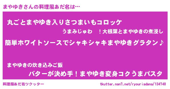 | ヘコむあだ名 | 『まやっぺ』『牛乳』『まやゆき(笑)』 |