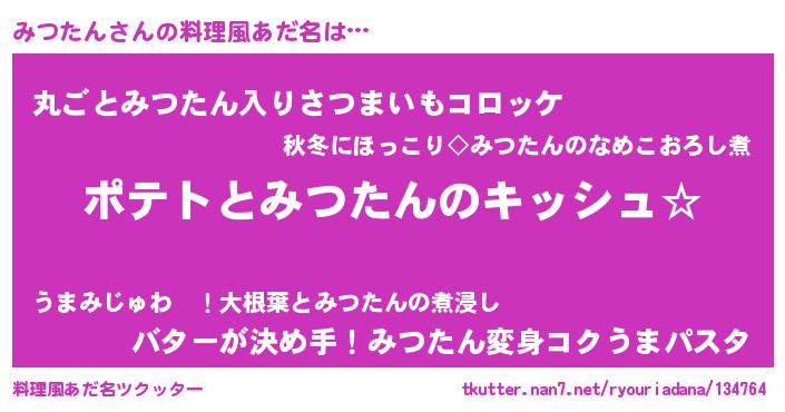 | 女子向けラノベタイトル風あだ名 | 『みつたんの卵を拾いまして』 |