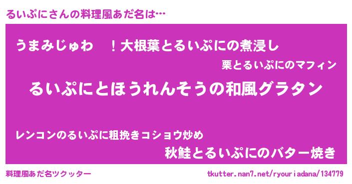 | 意味不明あだ名 | 『なめこ科るいぷに属』『自称るいぷに』 |