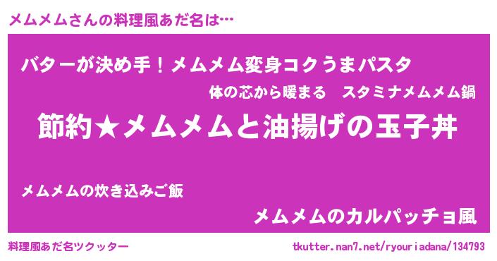 | ヒーロー風カッコイイあだ名 | 『スーパーメムメム』『愛の使者メムメム』 |