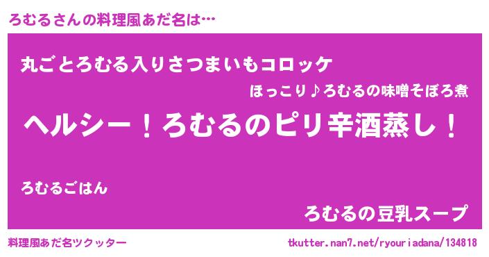 | 男性向けラノベタイトル風あだ名 | 『Re:ろむるから始める異世界生活』 |