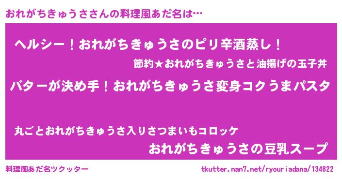 | 男性向けラノベタイトル風あだ名 | 『おまえをオタクにしてやるから、俺をおれがちきゅうさにしてくれ! 』 |