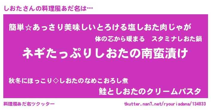 | ファンタジー風あだ名 | 『シオフェル』『シオディッシュ』 |