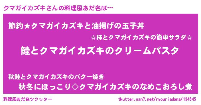 | ヘコむあだ名 | 『クマにー』『クマガイカズキ(小並感)』 |
