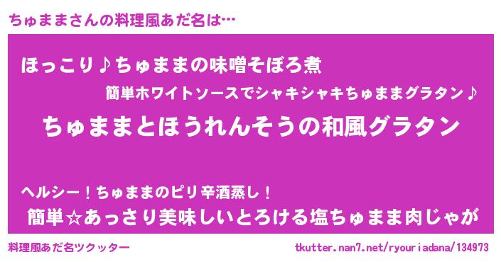 | 意味不明あだ名 | 『もやし科ちゅまま属』『自称ちゅまま』 |