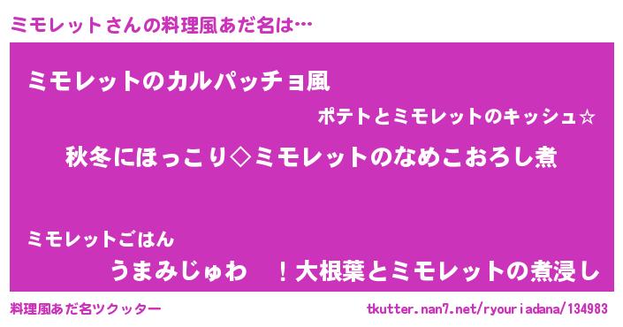 | ヘコむあだ名 | 『なまこ酢』『ミモっ子』『ミモにー』 |