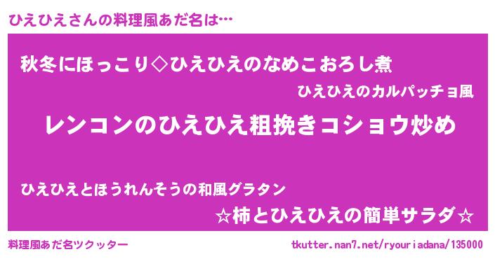 | 意味不明あだ名 | 『自称ひえひえ』『ヨモギ科ひえひえ属』 |