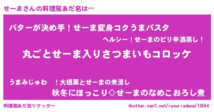 | 意味不明あだ名 | 『住所不定無職せーま(68歳)』『自称せーま』 |
