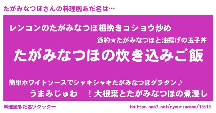 | 意味不明あだ名 | 『自称たがみなつほ』 |