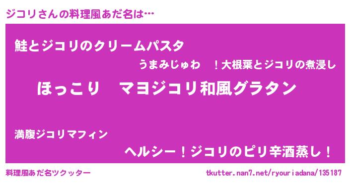 | 男性向けラノベタイトル風あだ名 | 『この素晴らしい世界にジコリを!』 |