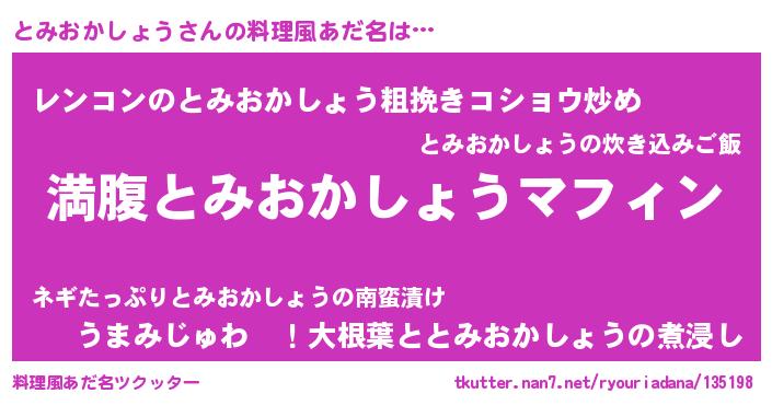 | 女子向けラノベタイトル風あだ名 | 『異世界で失敗しない100のとみおかしょう』 |