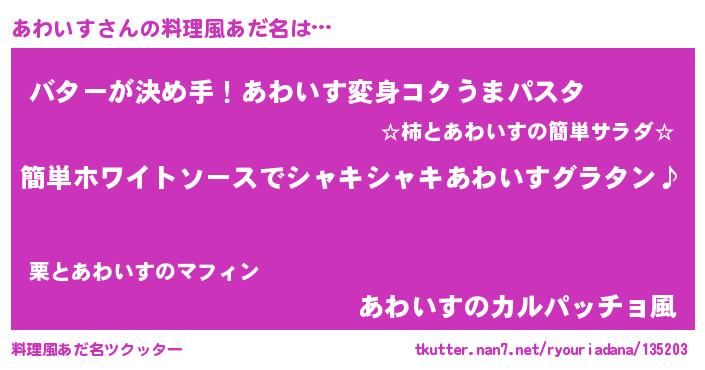 | 男性向けラノベタイトル風あだ名 | 『あわいすの嫁は女の子じゃないと思った?』 |