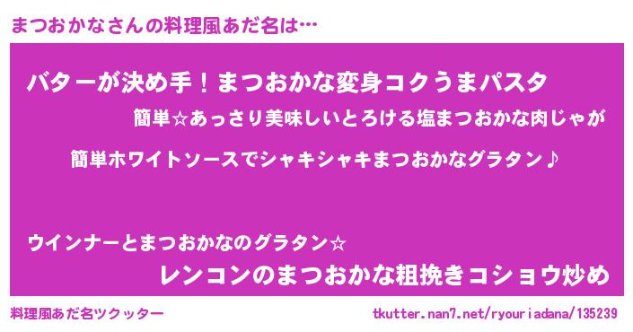 | ヘコむあだ名 | 『まつぷりん』『まつおかな(小並感)』 |