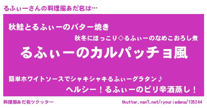 | ポケモン風あだ名 | 『ルーフイ』『ゼニルフ』『ルフゴンZ』 |