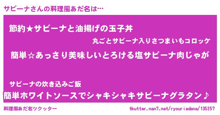 | ヒーロー風カッコイイあだ名 | 『ネオサビーナ』『スーパーサビーナ』 |