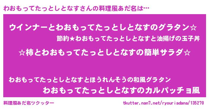 | ヒーロー風カッコイイあだ名 | 『ウルトラわおもってたっとしとなすマン』 |
