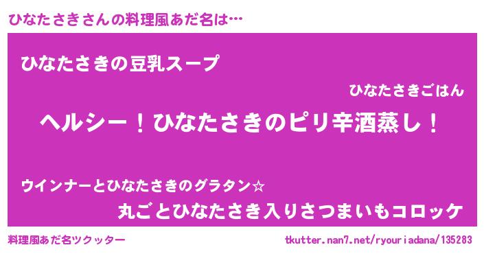 | ポケモン風あだ名 | 『ヒナセウス』『ヒヒナタサキ』 |